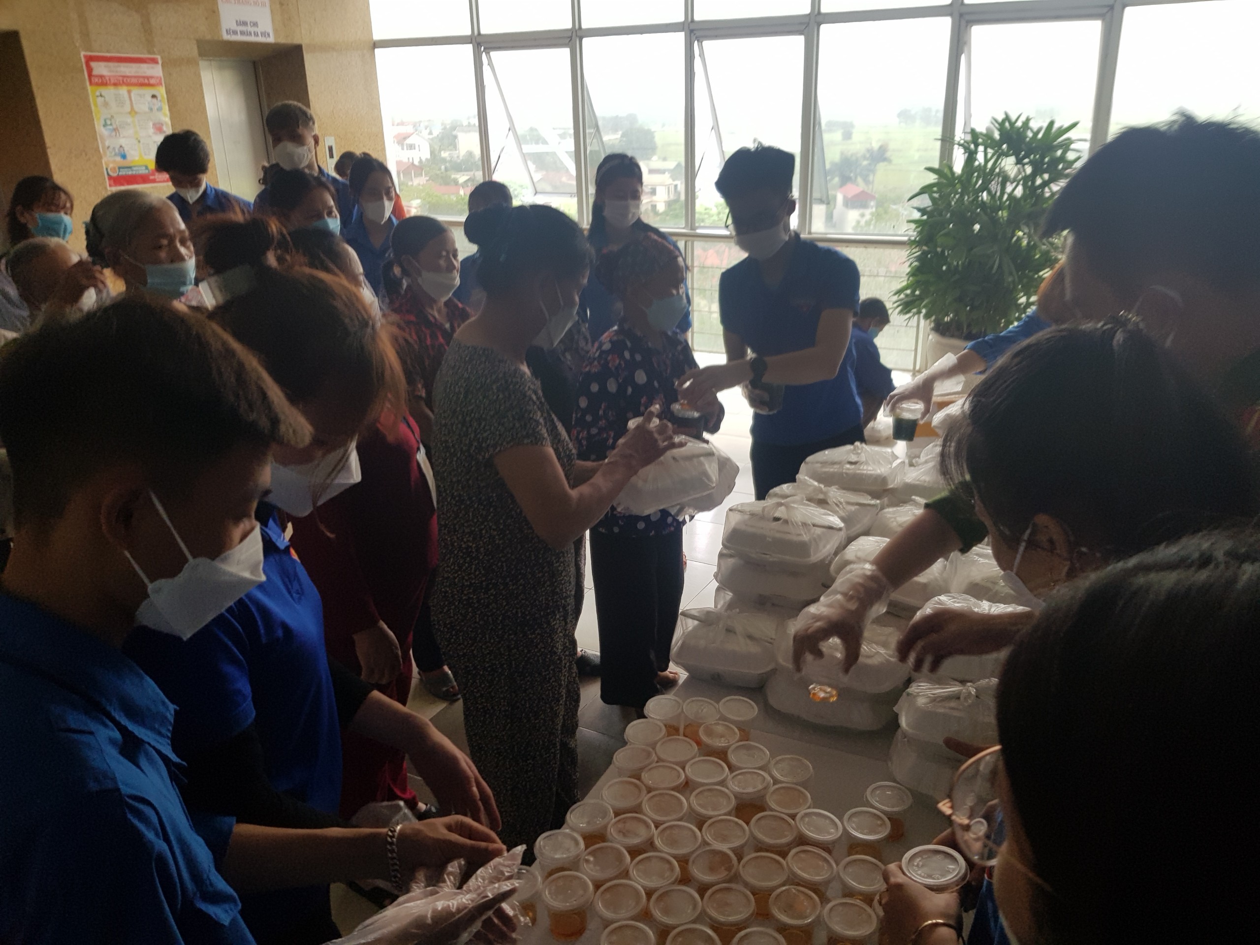 Ân cần trao tận tay bệnh nhân những hộp cơm nóng hổi, Anh Nguyễn Văn Việt (Bí thư Đoàn thanh niên Bệnh viện đa khoa Sóc Sơn) vừa hỏi han tình hình bệnh tình của những bệnh nhân vừa dặn dò bệnh nhân cần phải ăn uống đầy đủ, giữ sức khỏe.