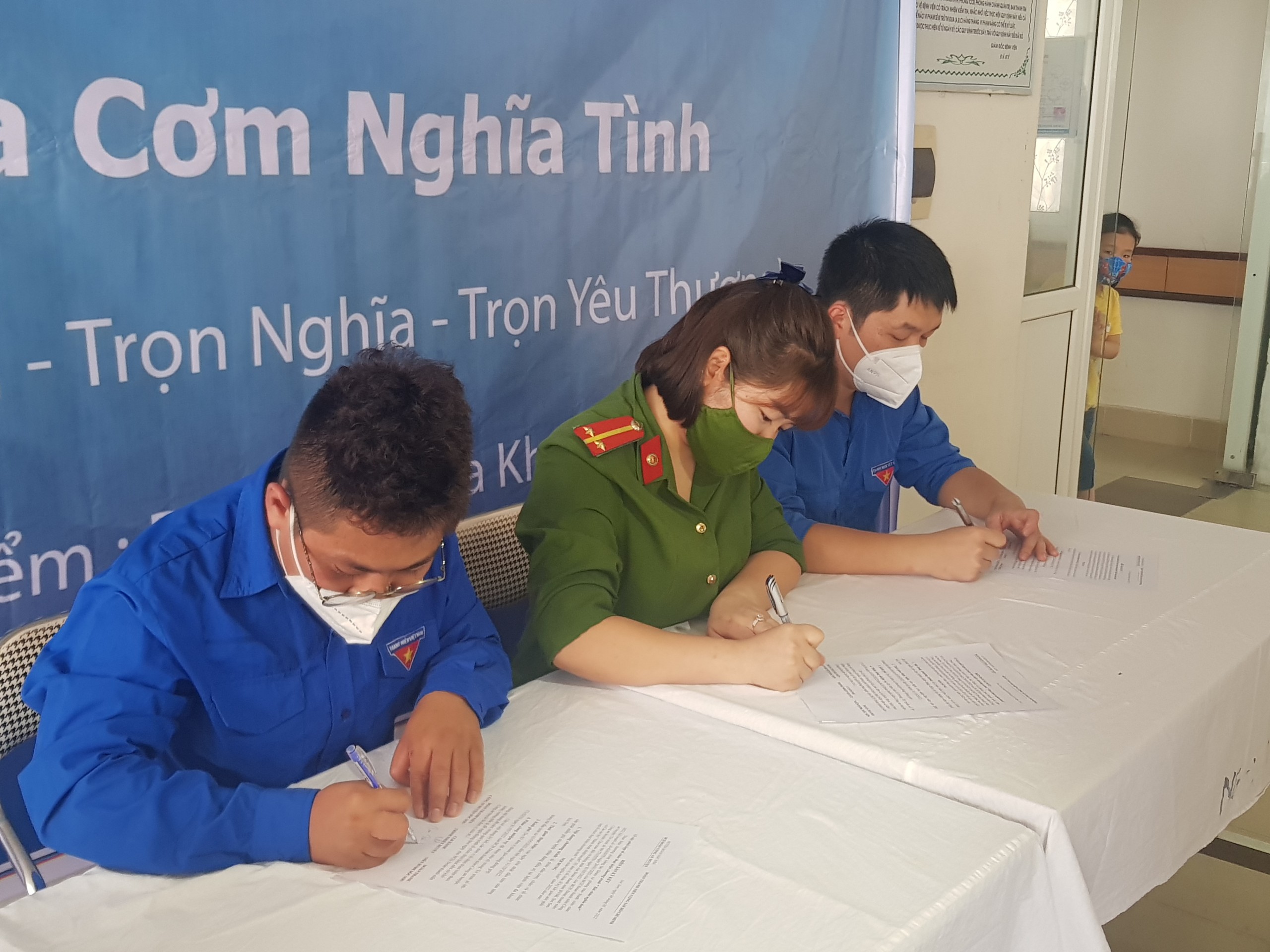 Đại diện CLB Hành trình Nhiệt huyết, Đoàn viên, Thanh niên của Đoàn thanh niên Công an huyện Sóc Sơn và Đoàn Thanh niên Bệnh viên Đa khoa Sóc Sơn ký kết phối hợp tổ chức chương trình “Bữa cơm nghĩa tình”.