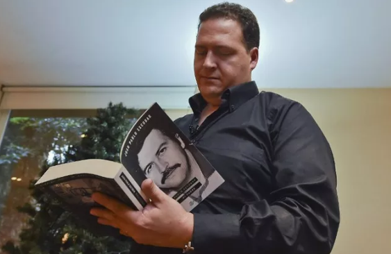 | Sebastian Marroquin cùng cuốn tự truyện về cha mình. |