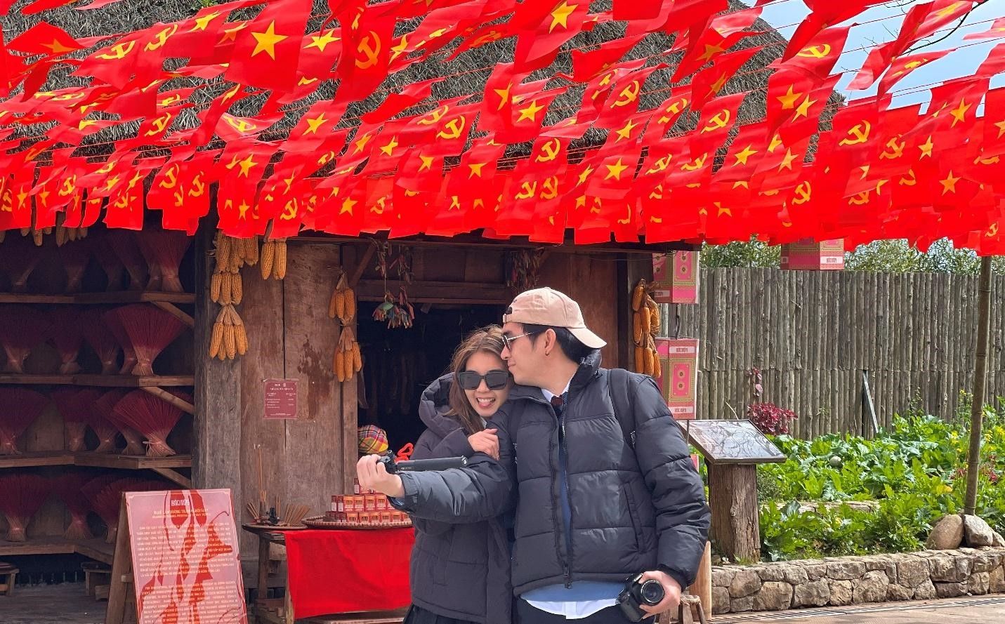 Bản Mây những ngày này thêm phần rực rỡ, xinh đẹp hơn với cờ hoa ngợp trời. Nhiều du khách trong nước và quốc tế đến với các khu du lịch trong dịp này bày tỏ niềm thích thú và hào hứng check in với không gian rực rỡ cờ hoa và những tấm pano, khẩu hiệu đầy ý nghĩa và ấn tượng.