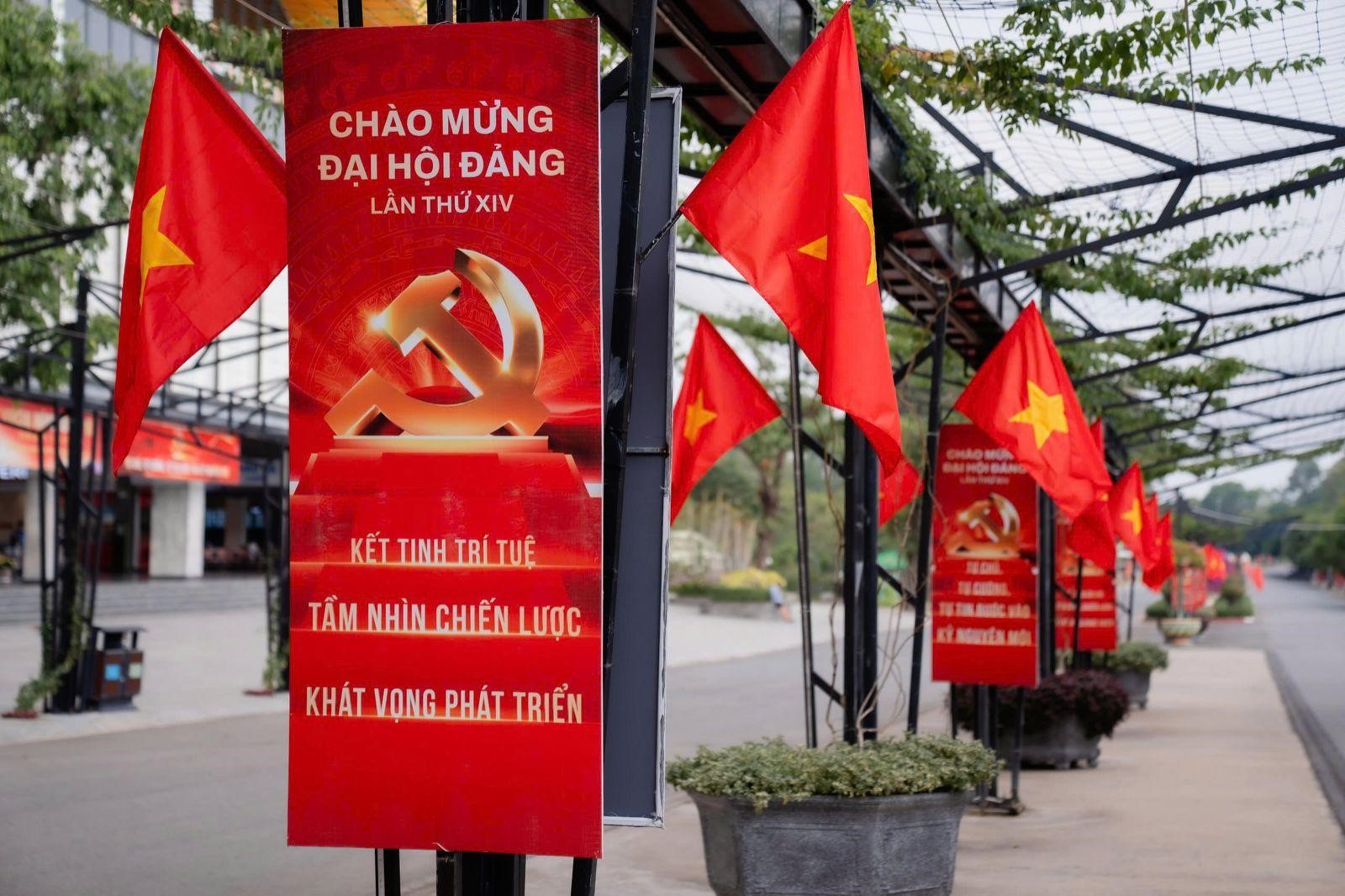 Những tấm băng rôn, khẩu hiệu chào mừng Đại hội đại biểu toàn quốc lần thứ XIV của Đảng được treo ngay ngắn, trang trọng tại khu du lịch Sun World Ba Den Mountain thể hiện tinh thần hướng về sự kiện chính trị trọng đại với niềm tự hào và phấn khởi.