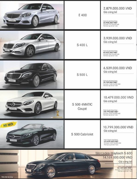 Chi tiết về bảng giá mới của Mercedes-Benz trong tháng 8, các bác có thể tham khảo bên dưới :