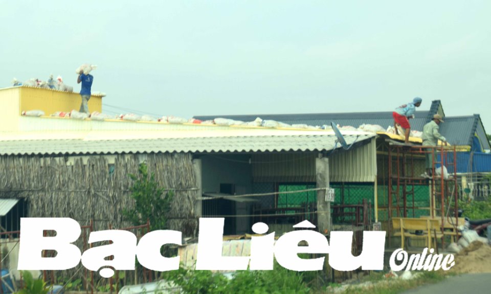 | Người dân thị trấn Gành Hào (huyện Đông Hải) chằng chống nhà chủ động ứng phó bão số 16. |