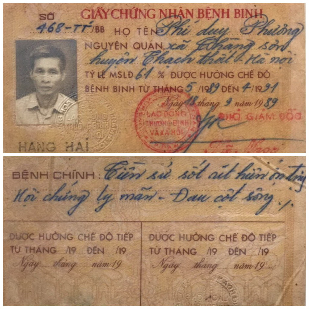 | Giấy chứng nhận bệnh binh Hạng Hai của ông Phí Duy Phương |