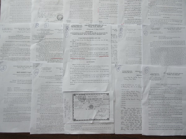 Hồ sơ gồm có: 1) Đơn tường trình ngày 3/7/2005 của Bà Lê Thị Thanh; 2) Báo cáo Đề xuất ngày 15/10/2005 của CA phường Liễu Giai; 3) CV số 446/UB-VP ngày 5/7/2005 của UBND quận Ba Đình; 4) CV số 733/UB-VP ngày 17/11/2006 của UBND quận Ba Đình; 5) CV số 347/UBND-ĐC ngày 30/11/2010 của UBND phường Liễu Giai; 6) QĐ số 290/QĐ-UBND ngày 28/12/2010 của UBND phường Liễu Giai; 7) QĐ số 187/QĐ-UBND ngày 20/10/2011 của UBND phường Liễu Giai; 8) CV số 300/TNMT ngày 26/09/2012 của Phòng TNMT quận Ba Đình; 9) QĐ số 180/QĐ-UBND ngày 16/10/2012 của UBND phường Liễu Giai; 10) Biên bản ngày 17/1/2013 của UBND phường Liễu Giai; 11) QĐ số 394/QĐ-UBND ngày 11/3/2016 của UBND quận Ba Đình; 12) CV số 2443/UBND-TNMT ngày 29/12/2017 của UBND quận Ba Đình; 13) Đơn khiếu nại CV 2443/UBND-TNMT của bà Lê Thị Thanh; 14) QĐ số 917/QĐ-UBND ngày 05/6/2018 của UBND quận Ba Đình; 15) Đơn khiếu nại QĐ số 917/QĐ-UBND của bà Lê Thị Thanh; 16) Biên bản ngày 27/6/2018 của UBND phường Liễu Giai; 17) CV số 573/UBND-TTrXD ngày 14/7/2018 của UBND phường Liễu Giai; 18) Biên lai thu thuế nhà, đất ngày 20/8/2007, Người nộp thuế Lê Thị Thanh.