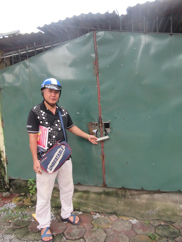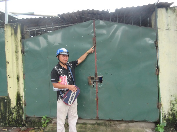 Ông Trần Quốc Trung - Trợ lý Chủ tịch HĐQT Công ty đứng trước ngôi nhà bị cán bộ UBND phường Liễu Giai tự ý khóa và hàn chết cửa lại