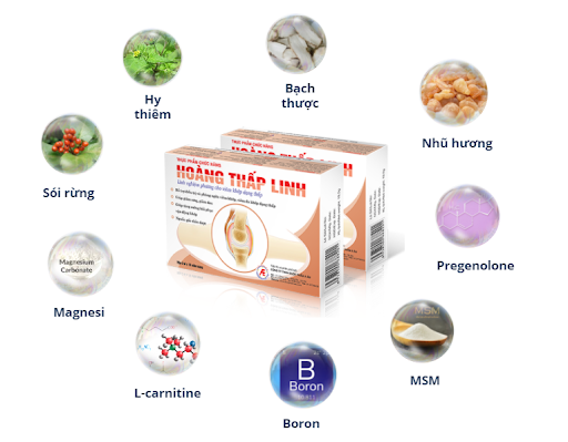 Hiện nay, để cải thiện tình trạng khô khớp, ngoài việc sử dụng thuốc tây, áp dụng các mẹo dân gian kể trên thì sản phẩm có nguồn gốc từ thiên nhiên cũng được đông đảo người bệnh lựa chọn và cho kết quả tích cực. Hoàng Thấp Linh là một trong rất ít những sản phẩm có thành phần bao gồm thảo dược và dưỡng chất hỗ trợ điều trị các vấn đề như: Viêm khớp dạng thấp, khô khớp, cứng khớp,... Cụ thể về các thành phần có trong Hoàng Thấp Linh như sau:
