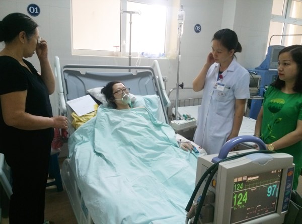 Khi thai được 27 tuần, khối u xâm lấn quá lớn chèn đặc 2 bên cổ, tràn dịch màng phổi khiến bệnh nhân khó thở, được chuyển vào khoa Nội, bệnh viện K nằm điều trị vào ngày 24/6, sau đó chuyển tiếp lên khoa Hồi sức, phải nhờ đến máy thở.