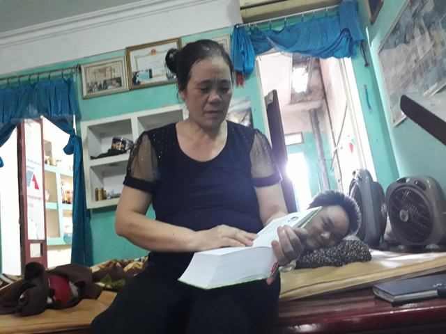| Do di chứng nên cứ vài phút bà Hạnh lại phải nắn chân 1 lần cho chồng. |