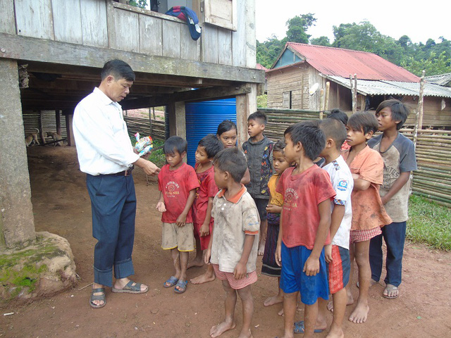 | Là một người thầy nhiều năm cắm bản, trong hành trang của thầy Nguyễn Sỹ Hà mỗi lần về xuôi lên chưa bao giờ thiếu những gói bánh, gói kẹo để động viên học trò. |