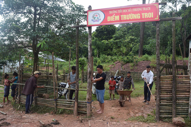 | Thầy và trò điểm trường bản Troi, Trường tiểu học số 2 Thượng Trạch lao động đầu năm học mới. |