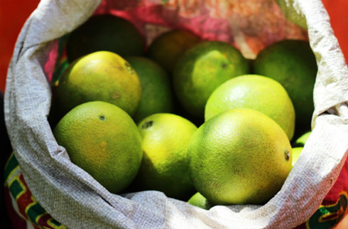 | Cam vừa chín tới có vỏ màu vàng xanh nhưng nếu chín đúng lúc thì ruột sẽ có màu đỏ đậm và vỏ chuyển sang mày vàng. Ảnh: Phương Đông. |