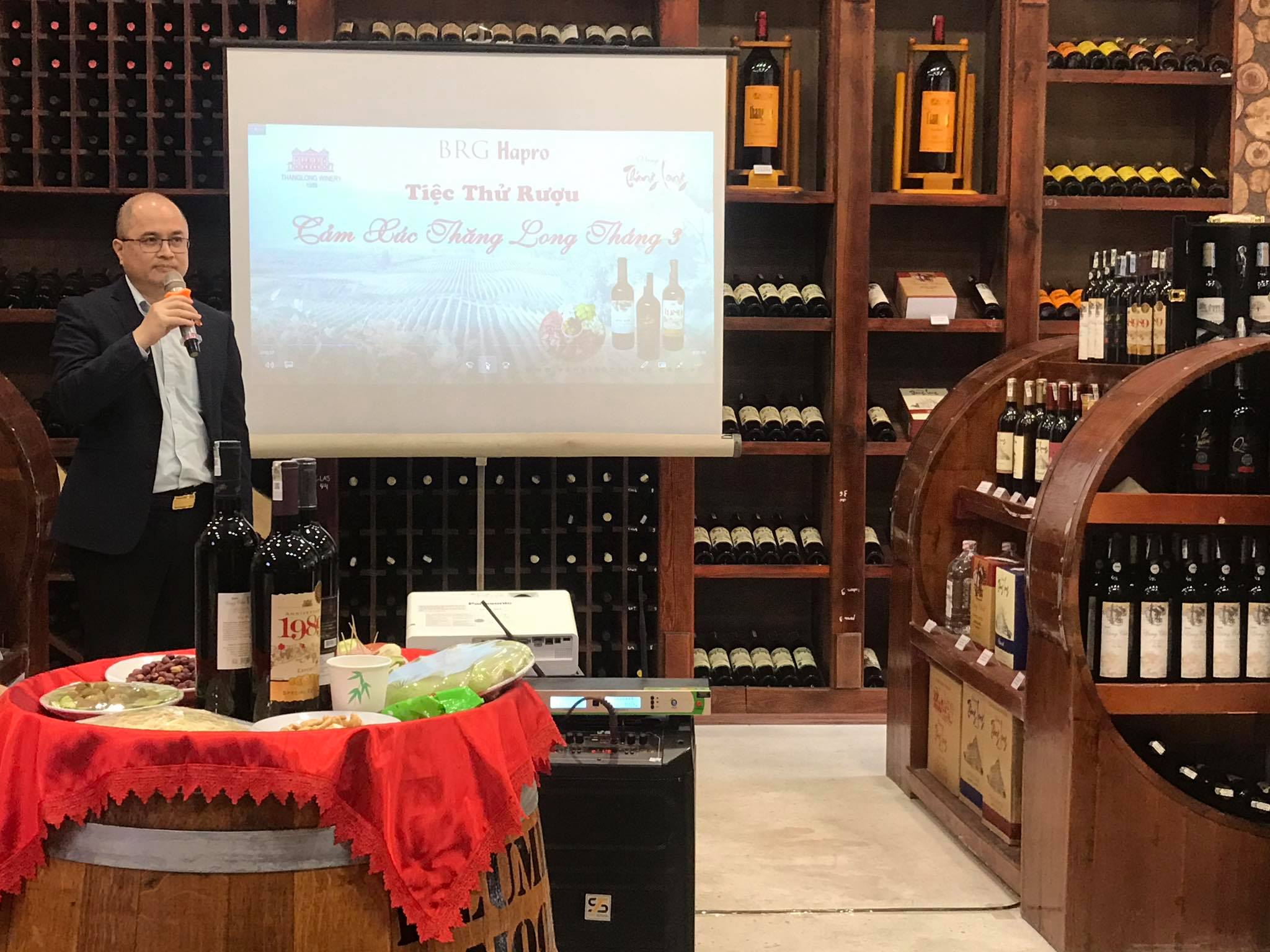 Giám đốc Công ty Cổ phần Vang Thăng Long Đinh Tiến Thành giới thiệu sản phẩm chất lượng cao do Công ty trực tiếp sản xuất và đóng chai