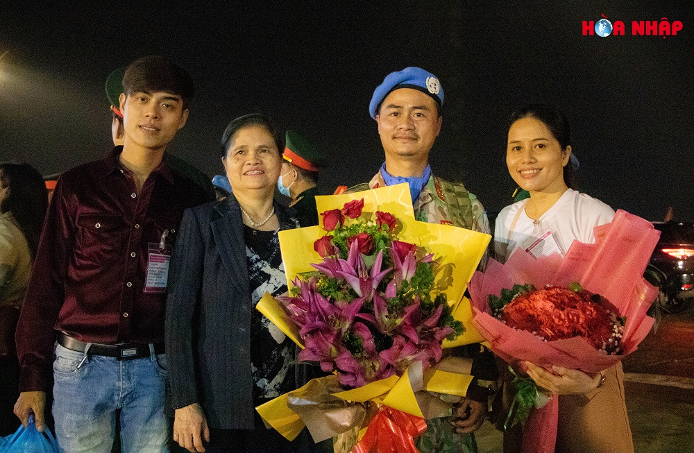 Trung tá Trịnh Mỹ Hòa, đại diện các thành viên BVDC 2.3, gửi lời cảm ơn đến tất cả mọi người: “Khi chúng tôi bước xuống sân bay, cảm giác xúc động, hạnh phúc như vỡ òa. Mặt dù thời tiết xấu và thời gian rất khuya nhưng các thủ trưởng từ các đơn vị, gia đình vẫn có mặt tổ chức lễ đón hết sức long trọng.
