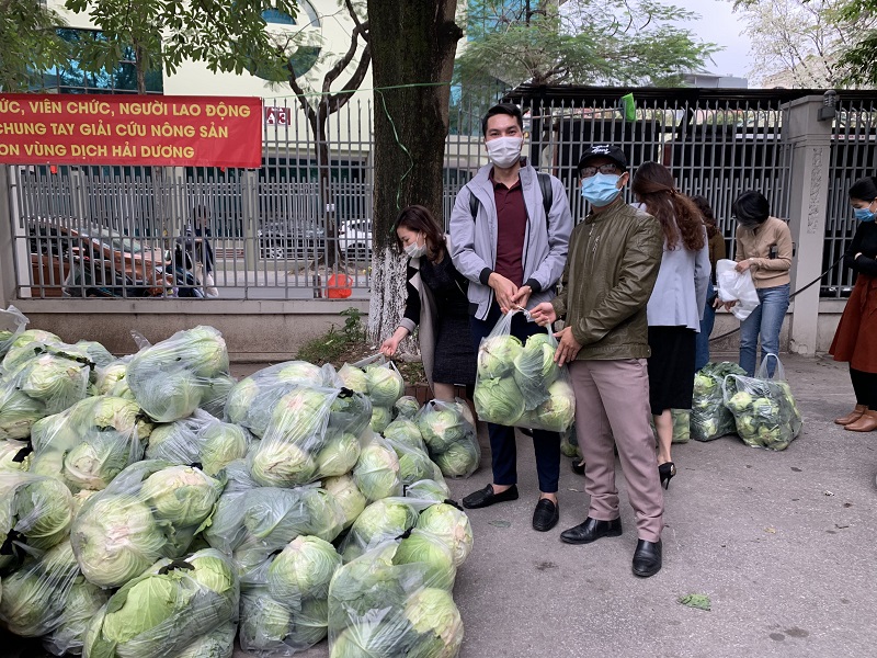 Tình trạng nông sản dư thừa ở Hải Dương, nhiều cá nhân, nhóm thiện nguyện đã kết nối với các hợp tác xã nông nghiệp, sau đó chuyển lên các điểm giải cứu nông sản trên Hà Nội giúp người dân tỉnh Hải Dương vượt qua khó khăn. Các mặt hàng như bắp cải, su hào, cà rốt, cà chua, ổi… đến thời điểm thu hoạch bị dồn ứ, không thể bán hay xuất khẩu khiến nhiều nông dân rơi vào tình cảnh khó khăn. Trước tình hình đó, sáng 22 và 23/2, gần 7 tấn hàng rau củ quả sạch ủng hộ bà con vùng dịch đã được tập kết về trụ sở Bộ Xây dựng (37 Lê Đại Hành, quận Hai Bà Trưng, Hà Nội).