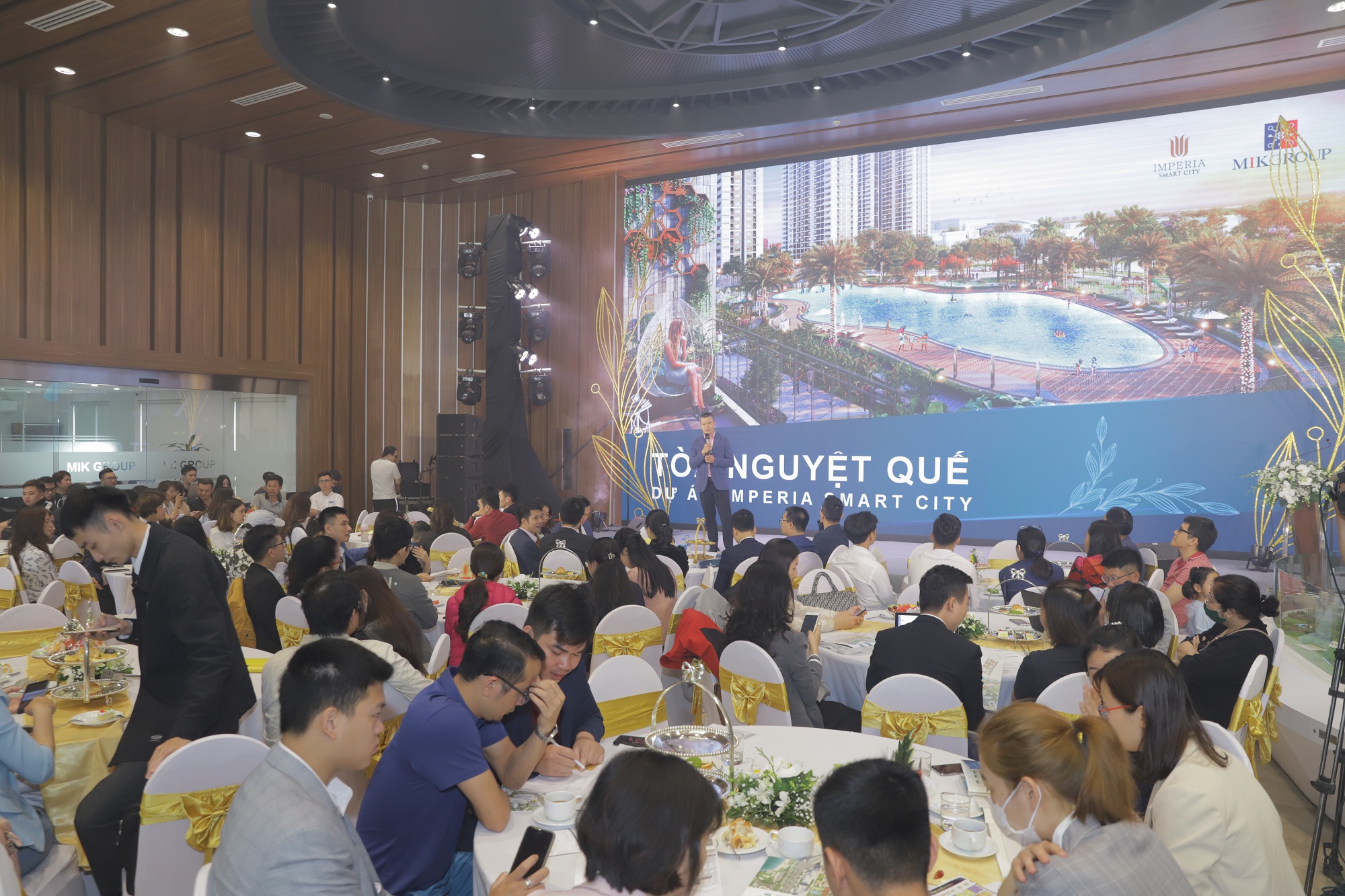 Ngay từ đầu giờ sáng, khi sự kiện còn chưa bắt đầu, khu vực check-in đón khách đã có hàng trăm người xếp hàng đăng ký. Và khi đồng hồ điểm 9h00, toàn bộ khán phòng đã chật kín, một số vị khách tới muộn không thể kiếm được chỗ ngồi. Theo đại diện MIKGroup, đây gần như là sự kiện đón lượng khách kỷ lục kể từ khi Tổ hợp Imperia Smart City ra mắt.
