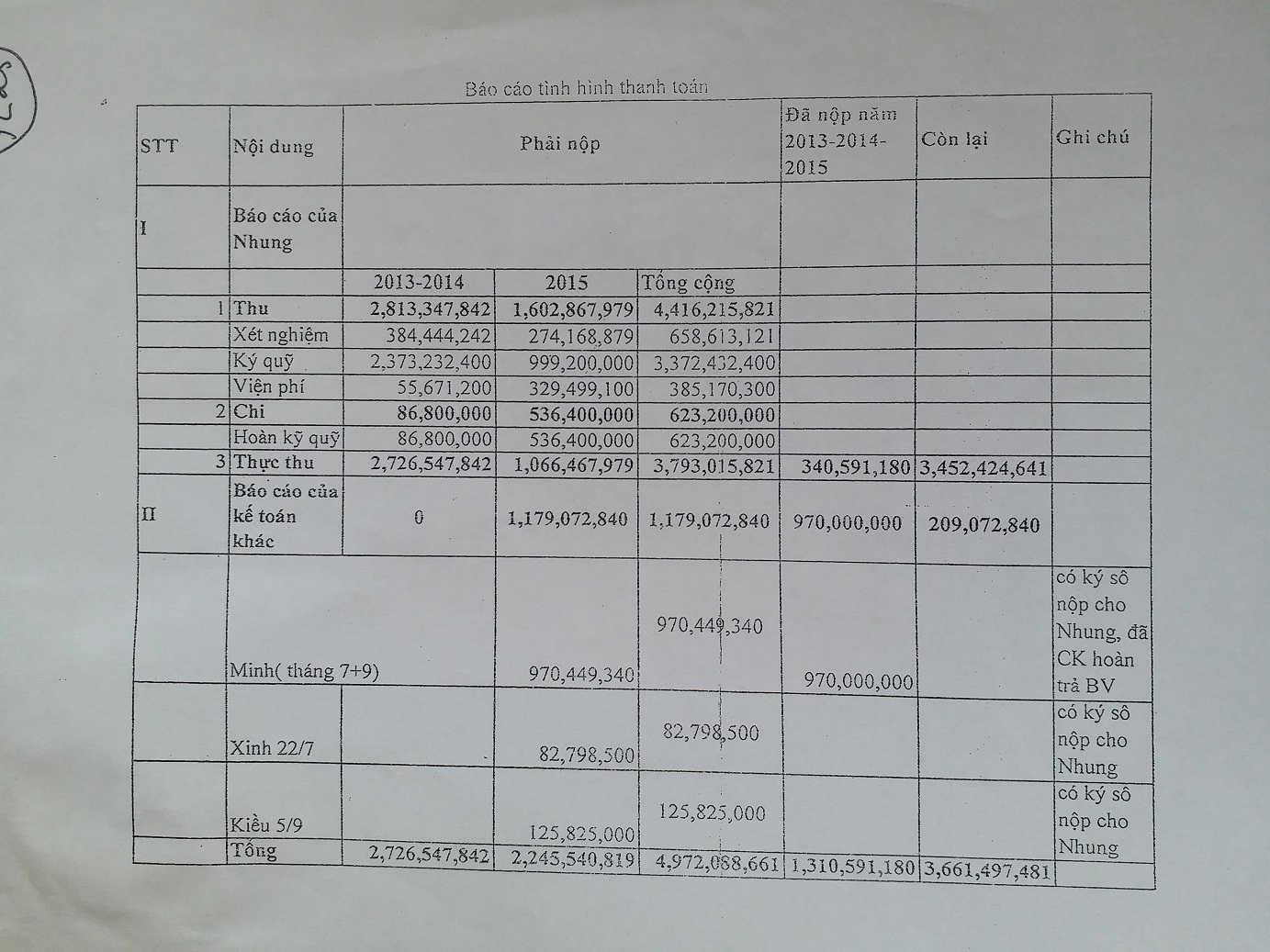 | Theo tài liệu bà Q cung cấp cho phóng viên Hòa Nhập, có hơn 3,661 tỷ đồng viện phí từ năm 2013 đến năm 2015 bị thất thoát chưa được làm rõ tại Bệnh viện Nhiệt đới Trung ương cần phải làm rõ |