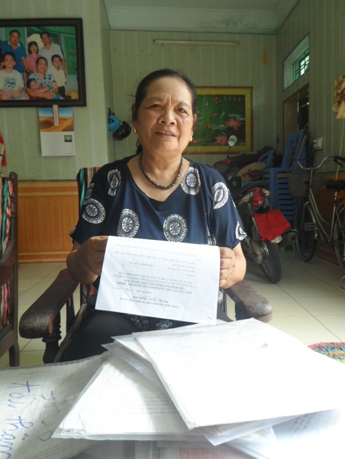 | Bà Ngô Thị Len cùng nhiều đơn thư khiếu nại, tố cáo về việc bắt người trái luật định năm 2005 |