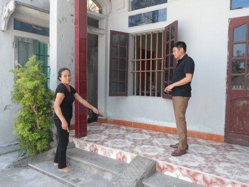 | Bà Nguyễn Thị Yến chỉ vị trí ông Mai Văn Thuy bị ngã tử vong tại hè nhà |