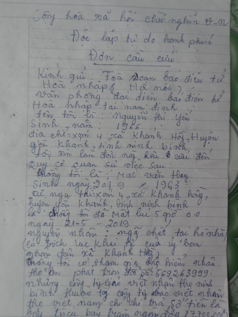 | Đơn kêu cứu của bà Nguyễn Thị Yến |