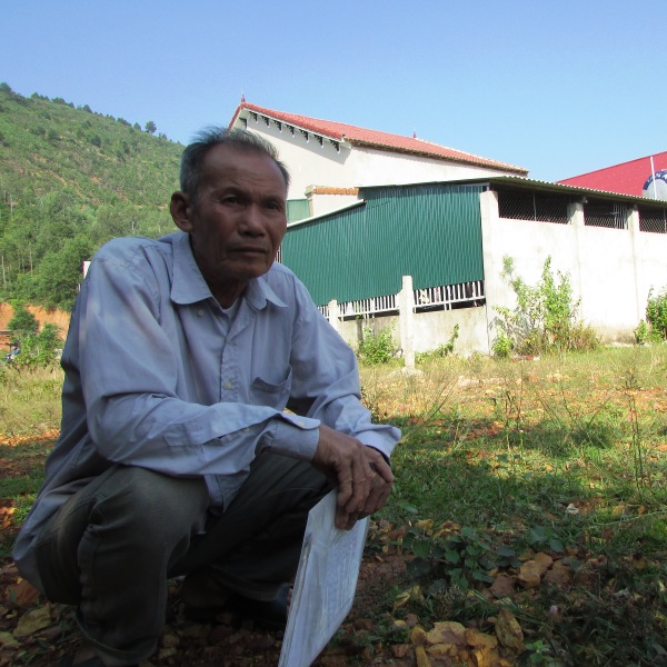 | Ông Trần Đình Biên trên khu đất ông cha để lại, lo lắng trước nguy cơ bị thu hồi mà không được bồi thường |