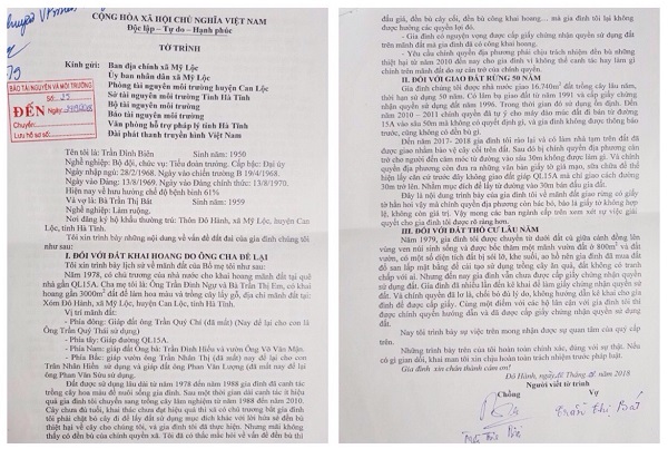 Theo gia đình ông Biên, trước khi kiến nghị đến cơ quan cấp trên thì gia đình đã nhiều lần phản ánh với địa phương nhưng không được trả lời, giải quyết. Người dân có đất liền kề đều thừa nhận khu đất gia đình ông Biên bị thu hồi có nguồn gốc từ đất khai hoang, quá trình sử dụng liên tục.