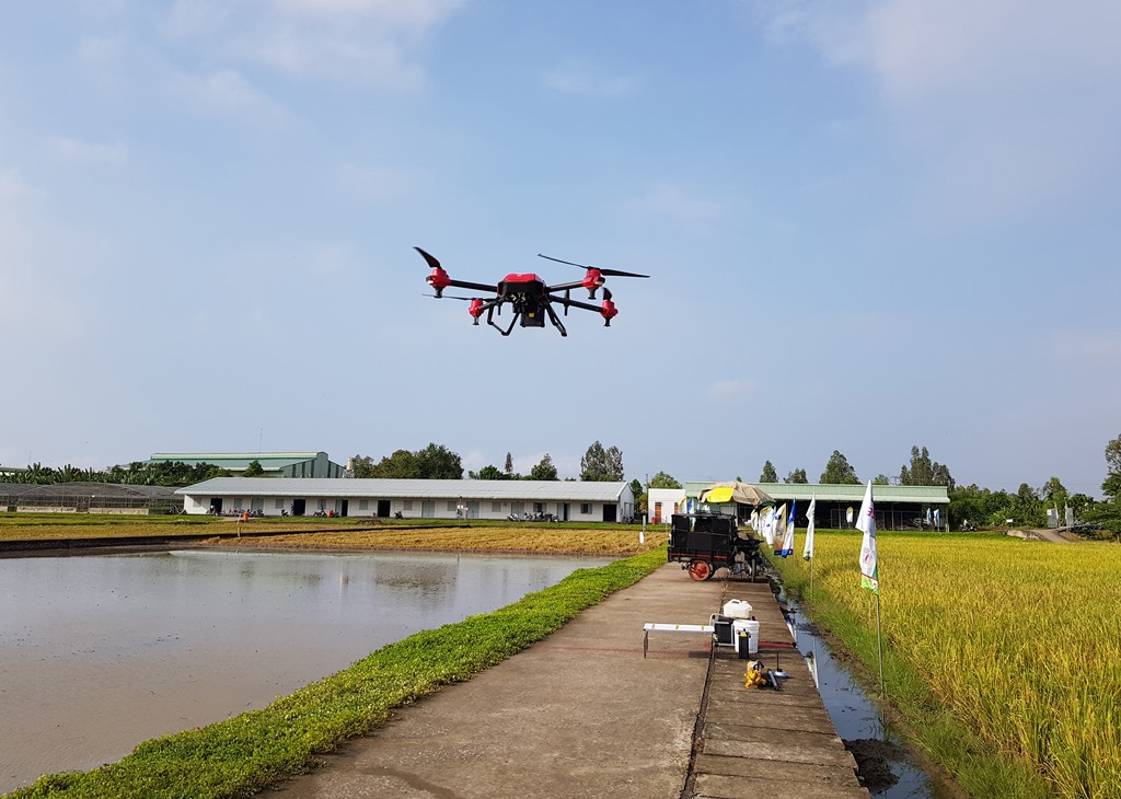 Dịch vụ phun thuốc bằng máy bay không người lái. Ảnh Trọng Triết