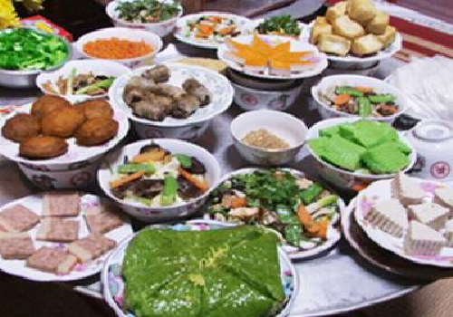 Nhiều thực phẩm chay như giò, chả quế, cá kèo, thịt cục hamburger, mực ống chay, bò hầm, gà... Tất cả đều được giới thiệu làm từ nguyên liệu có nguồn gốc thực vật như: Mì căn, tàu hũ ky, bột mì, đậu xanh...