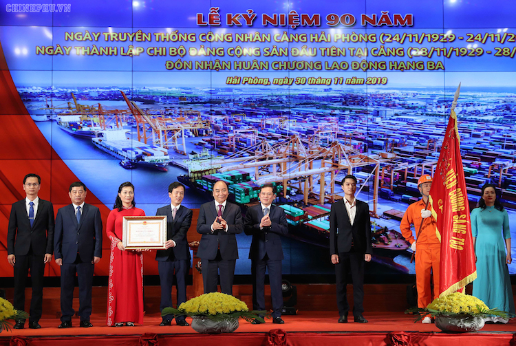 Tại buổi Lễ, thay mặt lãnh đạo Đảng, Nhà nước, Thủ tướng Chính phủ Nguyễn Xuân Phúc đã trao Huân chương Lao động Hạng Ba tặng đội ngũ cán bộ, công nhân, người lao động Cảng Hải Phòng.