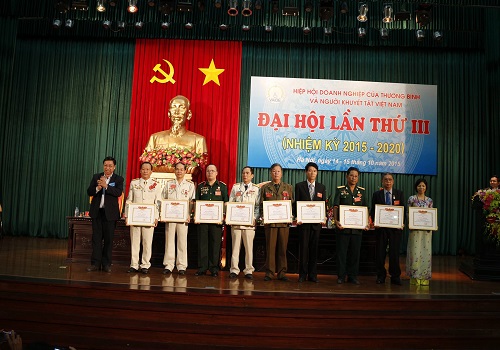 Ông Trần Văn Túc nhận Bằng khen của Bộ LĐTBH trao cho Hiệp hội Hà Nam nhân Đại hội VAIDE lần thứ III (người thứ 5 từ trái sang)
