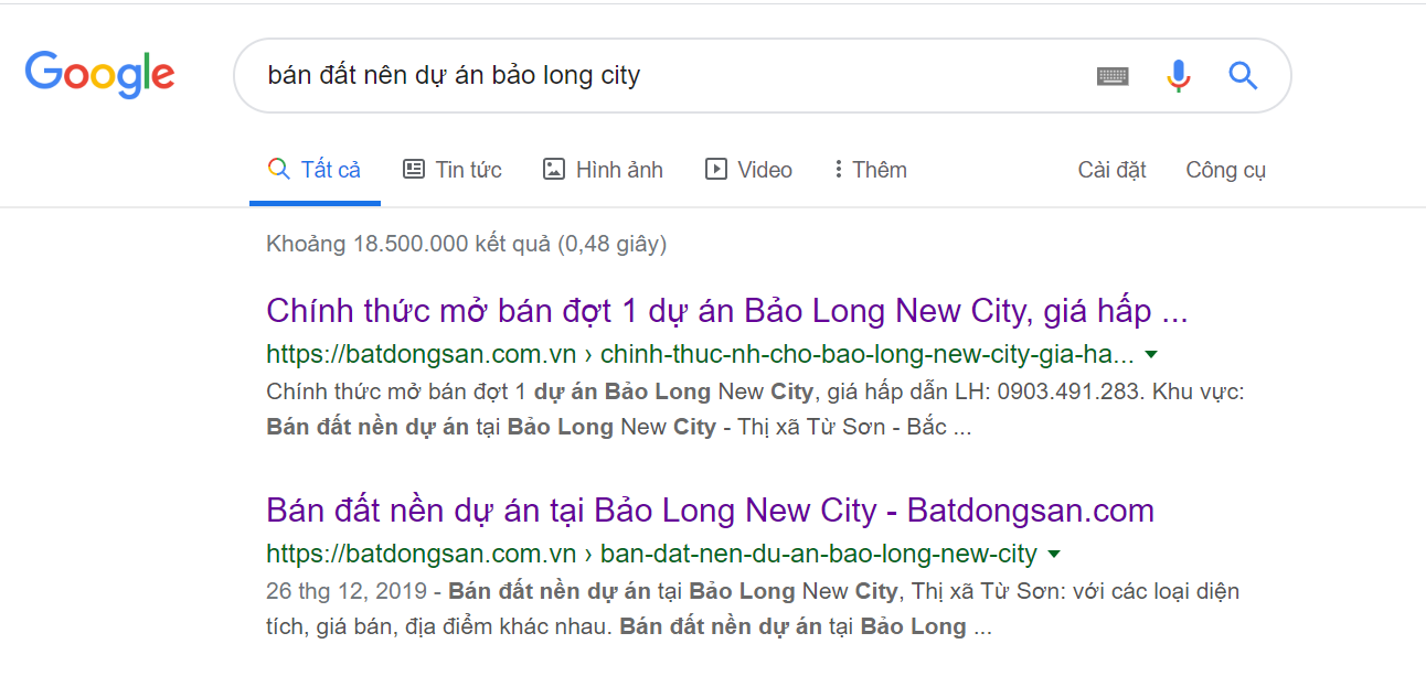 Theo tìm hiểu của phóng viên, dự án Bảo Long New City đang được các đơn vị mô giới bất động sản rao bán ngang nhiên trên các trang mạng internet.