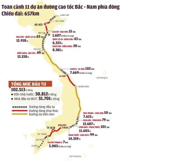 Bản đồ quy hoạch đường cao tốc Bắc Nam phía Đông.