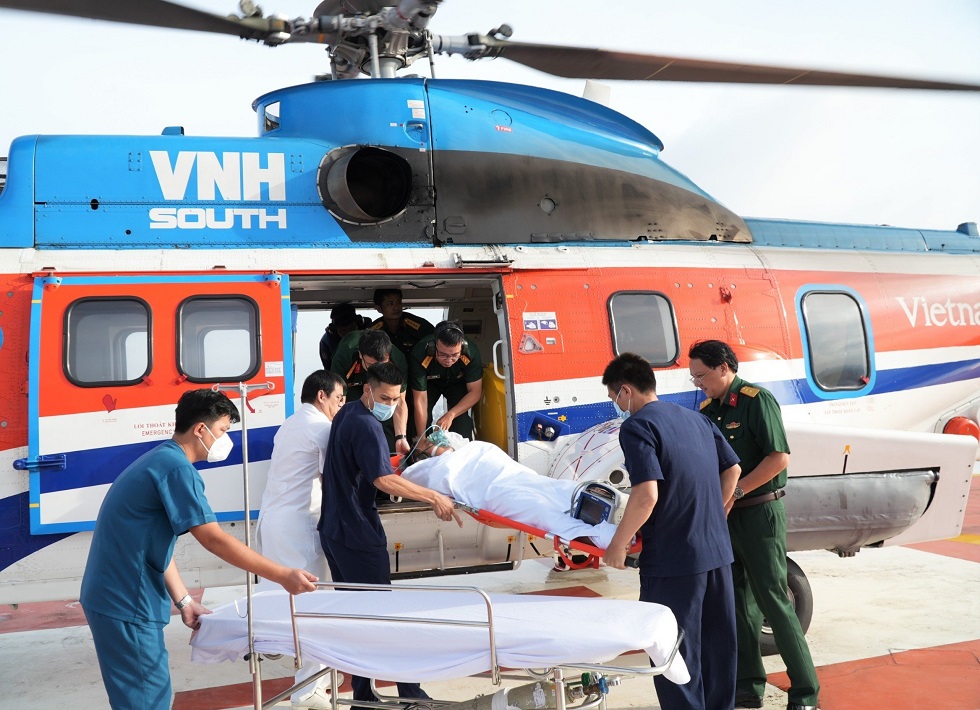 Chấp hành mệnh lệnh của cấp trên, Binh đoàn 18 đã điều động trực thăng Super Puma L2, số hiệu VN-8614 xuất phát về Bệnh xá đảo Sinh Tồn khẩn trương đưa các bệnh nhân về đất liền cấp cứu và điều trị. Trung tá Đỗ Hoàng Nam làm cơ trưởng chuyến bay và ekip cấp cứu đường không Bệnh viện quân y 175 rời sân bay Tân Sơn Nhất vào lúc 19h50 ngày 5/9.