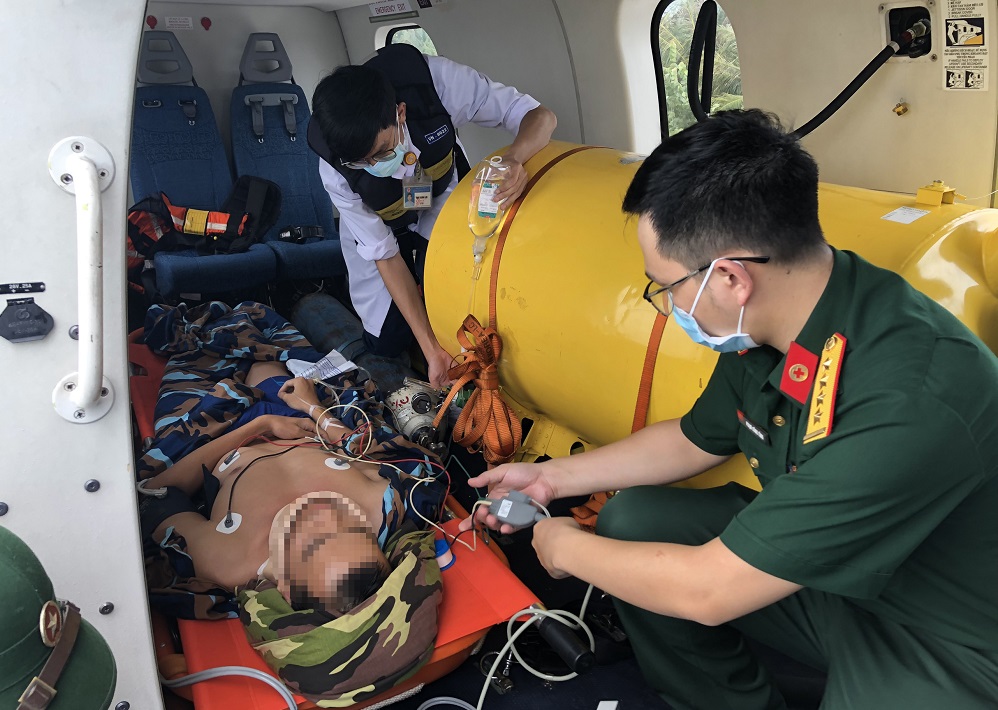 Được sự chỉ đạo kịp thời của Bộ Quốc phòng, Binh đoàn 18 đã điều trực thăng phối hợp với Tổ cấp cứu đường không Bệnh viện Quân y 175 do Đại úy, bác sĩ Phạm Công Tình - Khoa Hồi sức tích cực làm tổ trưởng bay ra đảo Sơn Ca đưa bệnh nhân về đất liền. Tuy nhiên, do ảnh hưởng của bão nên máy bay không thể trực tiếp bay từ bãi đáp trực thăng của bệnh viện. Tổ cấp cứu đường không đã đi từ TP. HCM xuống Vũng Tàu lúc 23h30 phút tối ngày 4/1/2023 và xuất phát bay ra huyện đảo Trường Sa lớn lúc 6h24' sáng ngày 5/1/2023.