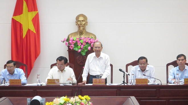 Cuộc họp khẩn đối phó dịch do virus corona sáng 30.1 do chủ tịch UBND tỉnh chủ trì với sự có mặt chỉ đạo của Bí thư Tỉnh ủy Nguyễn Mạnh Hùng (người đứng). Ảnh: Quế Hà