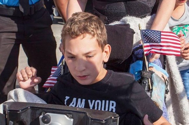 Cậu bé khuyết tật JJ Holmes phản đối ông Trump. (Nguồn: AP)