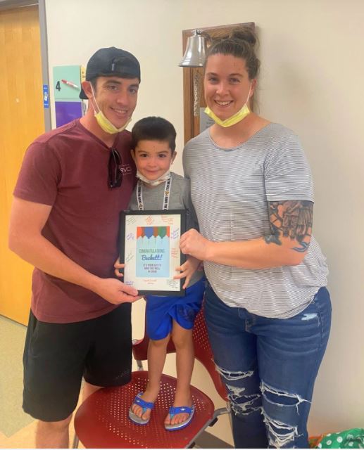 Mẹ cậu bé chia sẻ dòng caption nghẹn ngào đính kèm tấm ảnh của con trai ngày xuất viện: "Khi bác sĩ nói rằng tối mai là buổi hòa trị cuối cùng, trái tim tôi muốn nổ tung. Tôi quá tự hào về con trai mình. Lần này thằng bé đã chiến thắng".