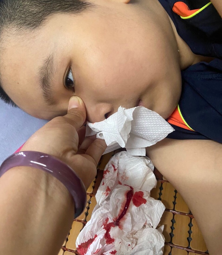 Theo lời chị Cẩm Nhung, vào cuối năm 2020, bé Phúc chạy xe đạp đi học thì bị té, trầy đầu gối chân phải. Ban đầu chỉ nghĩ là vết thương nhỏ nên gia đình chủ quan không đưa bé đi khám. Một phần là lúc này gia đình chị Nhung quá khó khăn, không kiếm ra tiền để đưa con đi bệnh viện.