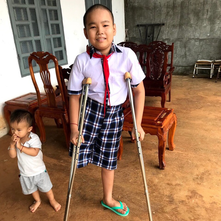 Dù chỉ còn một chân nhưng Phúc chưa bao giờ tỏ ra thất vọng, đau khổ hay tự ti. Cậu bé vẫn luôn cười rạng rỡ, vui vẻ chơi đùa cùng bạn bè khi được về nhà… Cứ hễ được về nhà, Phúc tập đi bằng nạng, cứ khỏe là xin mẹ chở đi học, chưa từng bỏ bài vở cả khi nằm viện, vẫn đạt đủ điểm để tốt nghiệp lớp 5 và lên cấp 2.