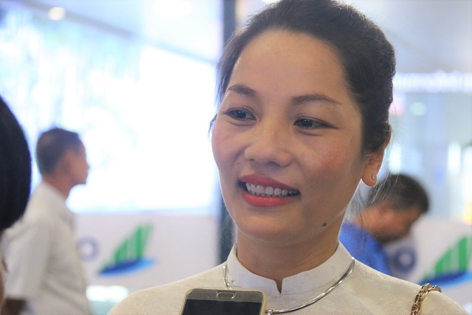 Chị Bùi Thị Họa vui mừng trước kết quả cậu con trai giành được.