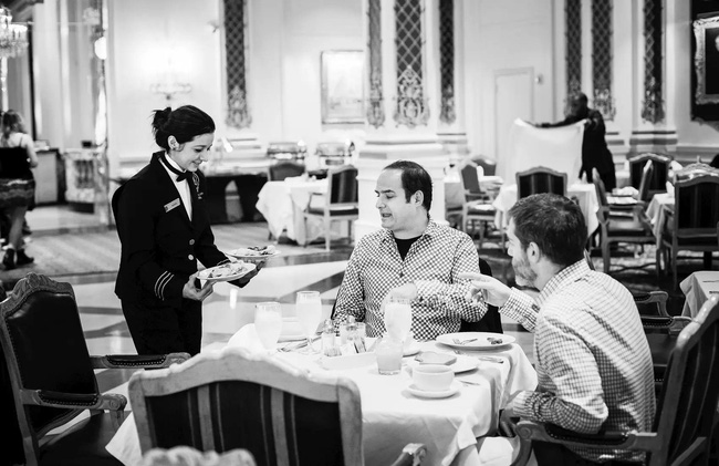 Nhân viên phục vụ nhìn chúng tôi bằng ánh mắt nghi ngờ: "Để tôi gọi quản lý."
