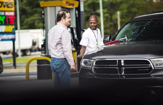 Địa điểm đầu tiên mà chúng tôi dừng chân là một cửa hàng Starbucks. Vẫn ngồi yên trên xe, Jeff bắt đầu mở lời với nhân viên bán hàng qua camera: "Xin chào! Tôi muốn mua 2 ly cà phê, nhưng chúng tôi mới bị đánh cắp hết tiền và giấy tờ tùy thân. Liệu tôi có thể viết một tờ giấy nợ và trả tiền cho cô sau được không? Tôi biết chuyện này thật vô lý, nhưng đây là sự thật. Cô có thể đưa cho tôi cà phê cùng số tài khoản hay thứ gì đó tương tự được không?"