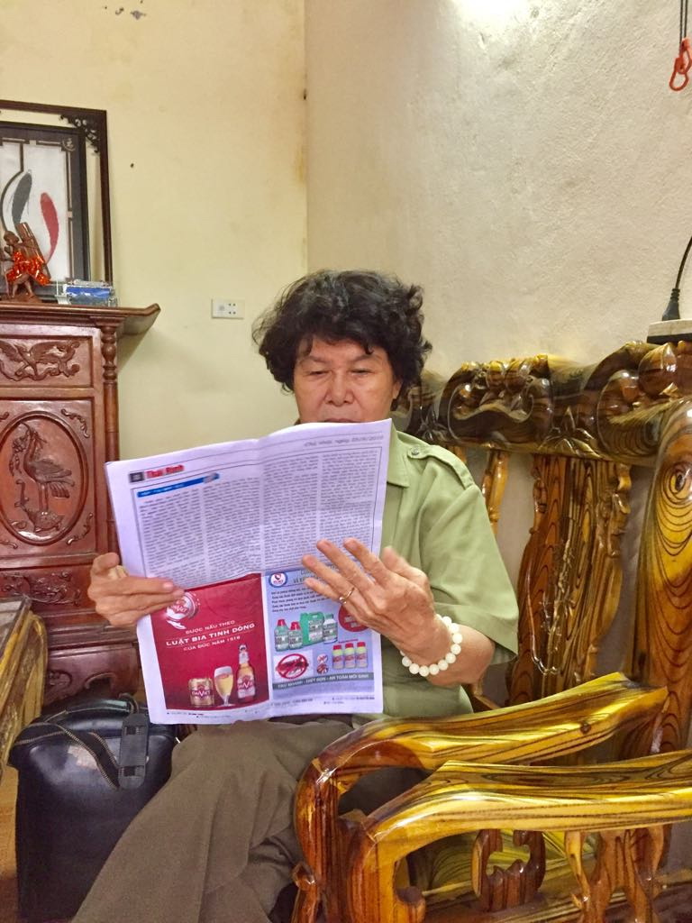 Chị Điệp đọc bài mà báo Thái Bình đã đăng về mình