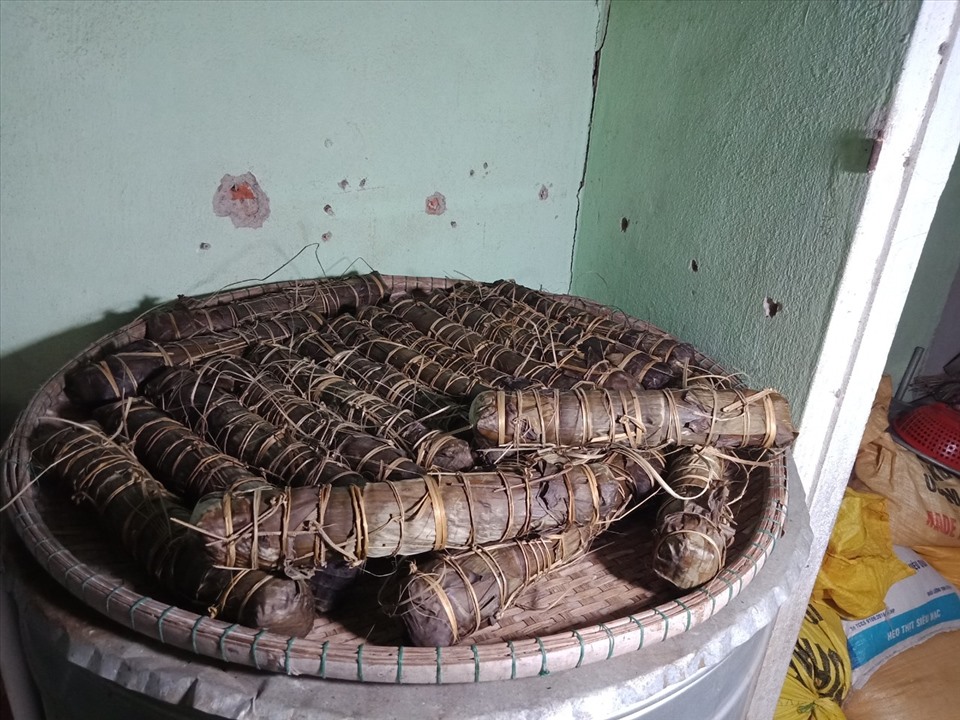 "Đòn bánh tét tro thường dài 35-40cm nên người dân phải chọn những chiếc lá chuối đẹp, không bị tả tơi để gói. Đặc biệt, bà con ở đây chẻ nhỏ ống nứa chặt trên rừng về làm dây buộc chứ không dùng dây ni-lông" - bà Lạc kể.