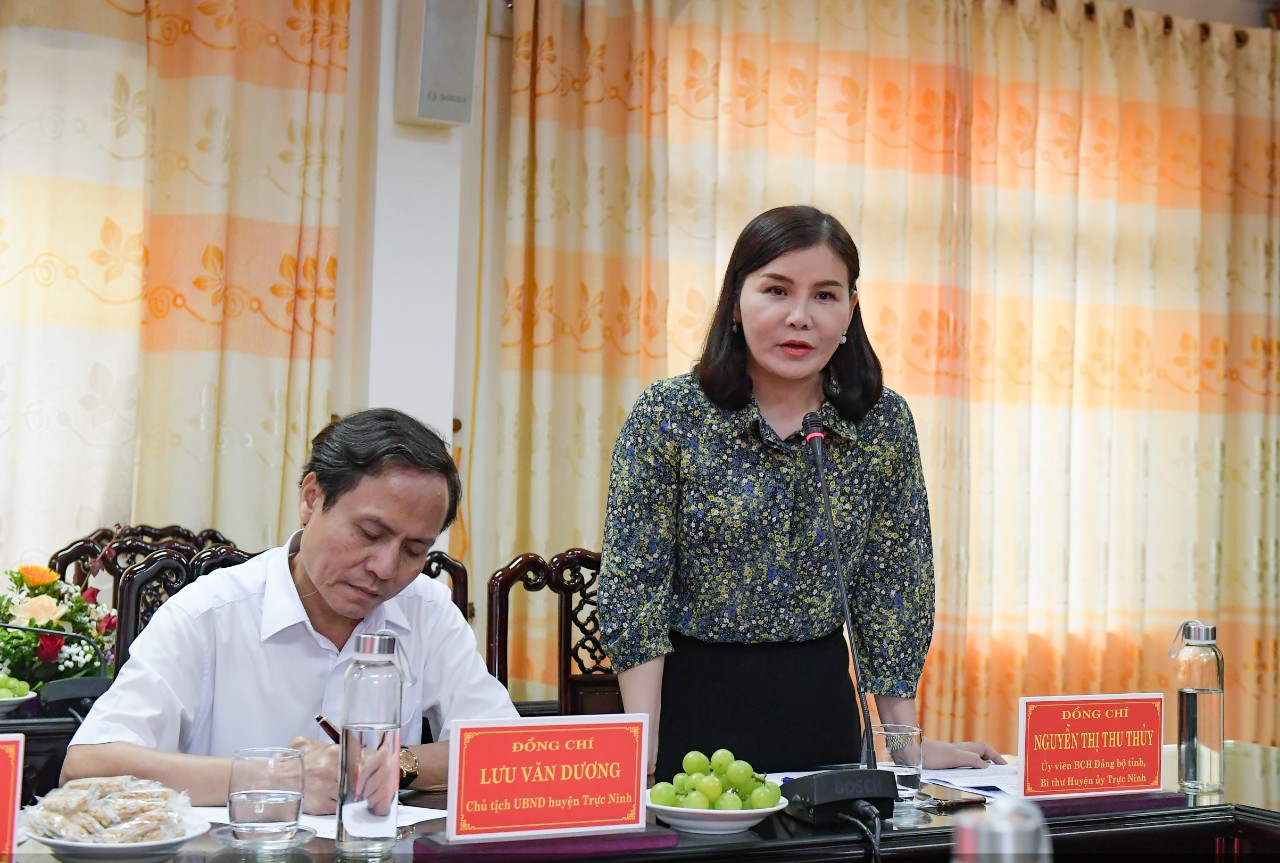Phát biểu mở đầu buổi gặp mặt, đồng chí Nguyễn Thị Thu Thủy - Ủy viên BCH Đảng bộ tỉnh Nam Định, Bí thư Huyện ủy Trực Ninh cho biết: Những năm qua, mặc dù chịu ảnh hưởng của dịch Covid-19, nhưng tình hình kinh tế của huyện Trực Ninh (tỉnh Nam Định) vẫn luôn duy trì tốc độ tăng trưởng khá. Đảng bộ, chính quyền huyện Trực Ninh đã tập trung lãnh đạo, động viên cả hệ thống chính trị đồng lòng, phát huy sức mạnh tổng hợp tăng cường các giải pháp thúc đẩy phát triển sản xuất, kinh doanh theo hướng đồng bộ, hiện đại.
