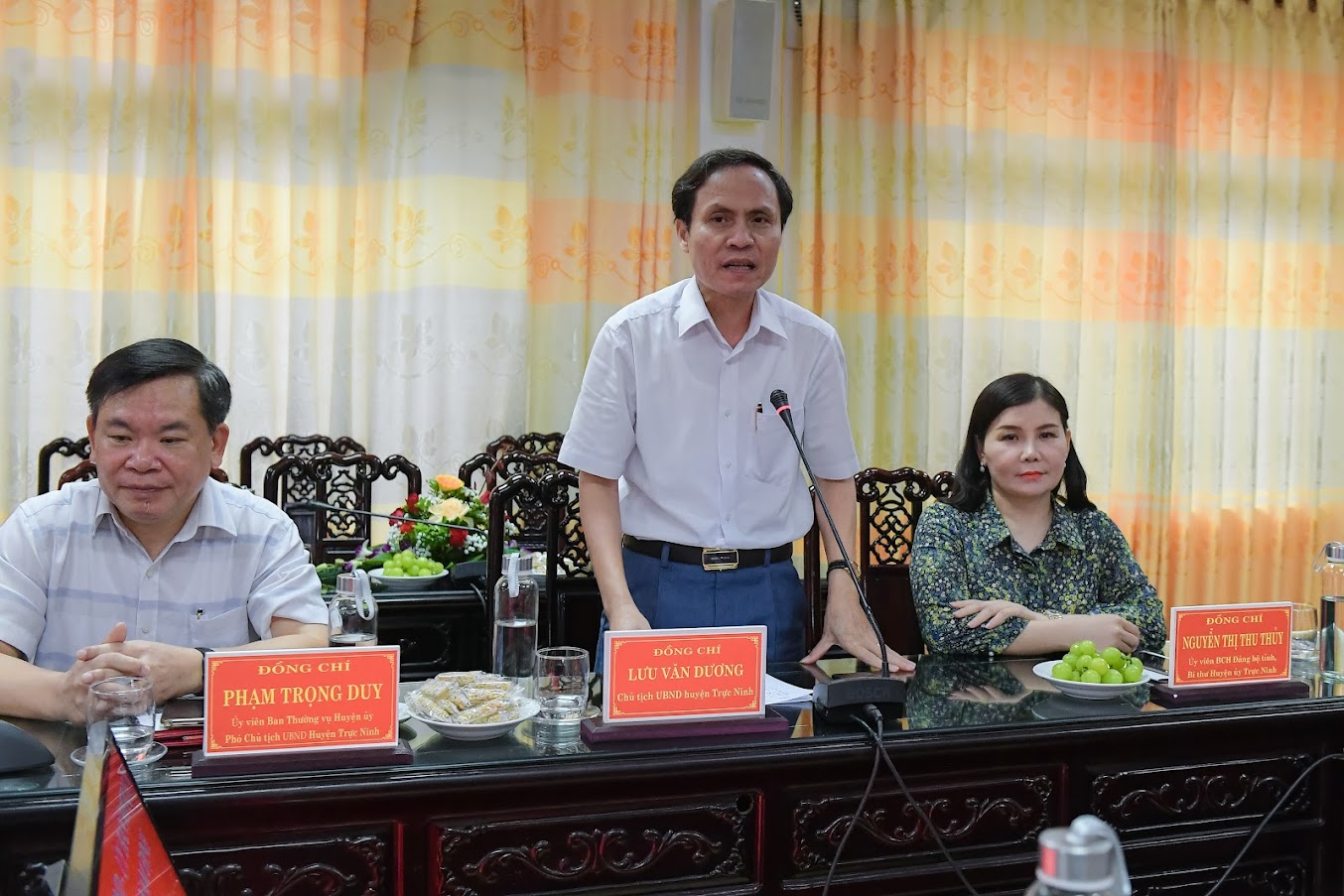 Đồng chí Lưu Văn Dương - Chủ tịch UBND huyện Trực Ninh phát biểu.