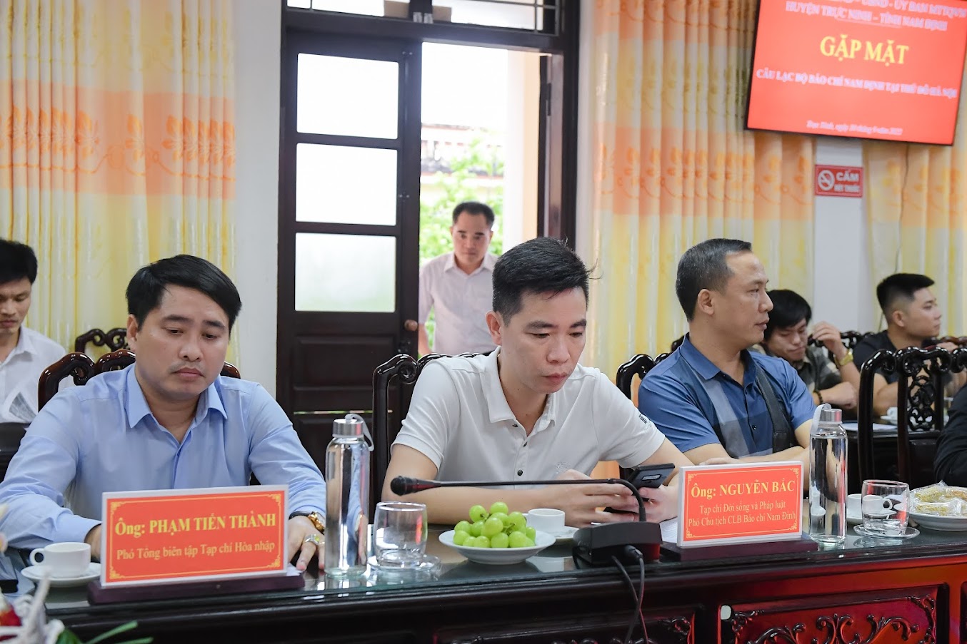 Ông Phạm Tiến Thành - Phó TBT Tạp chí Hòa Nhập (áo xanh), ông Nguyên Bắc - Phó Chủ tịch CLB báo chí Nam Định tham dự.