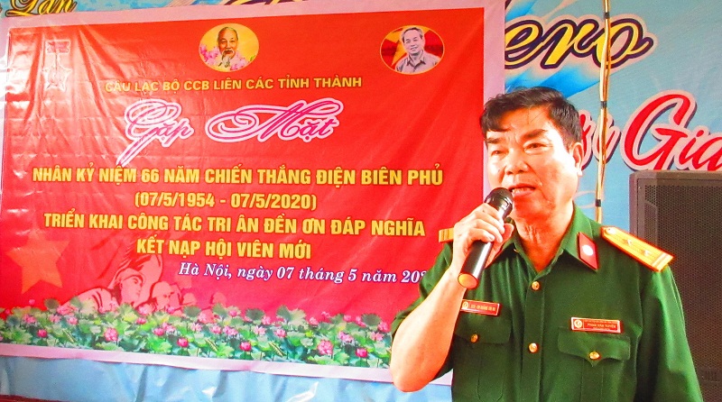 Đại tá, AHLLVT Đinh Thế Văn - Chủ tịch CLB tới dự và phát biểu tại buổi gặp mặt