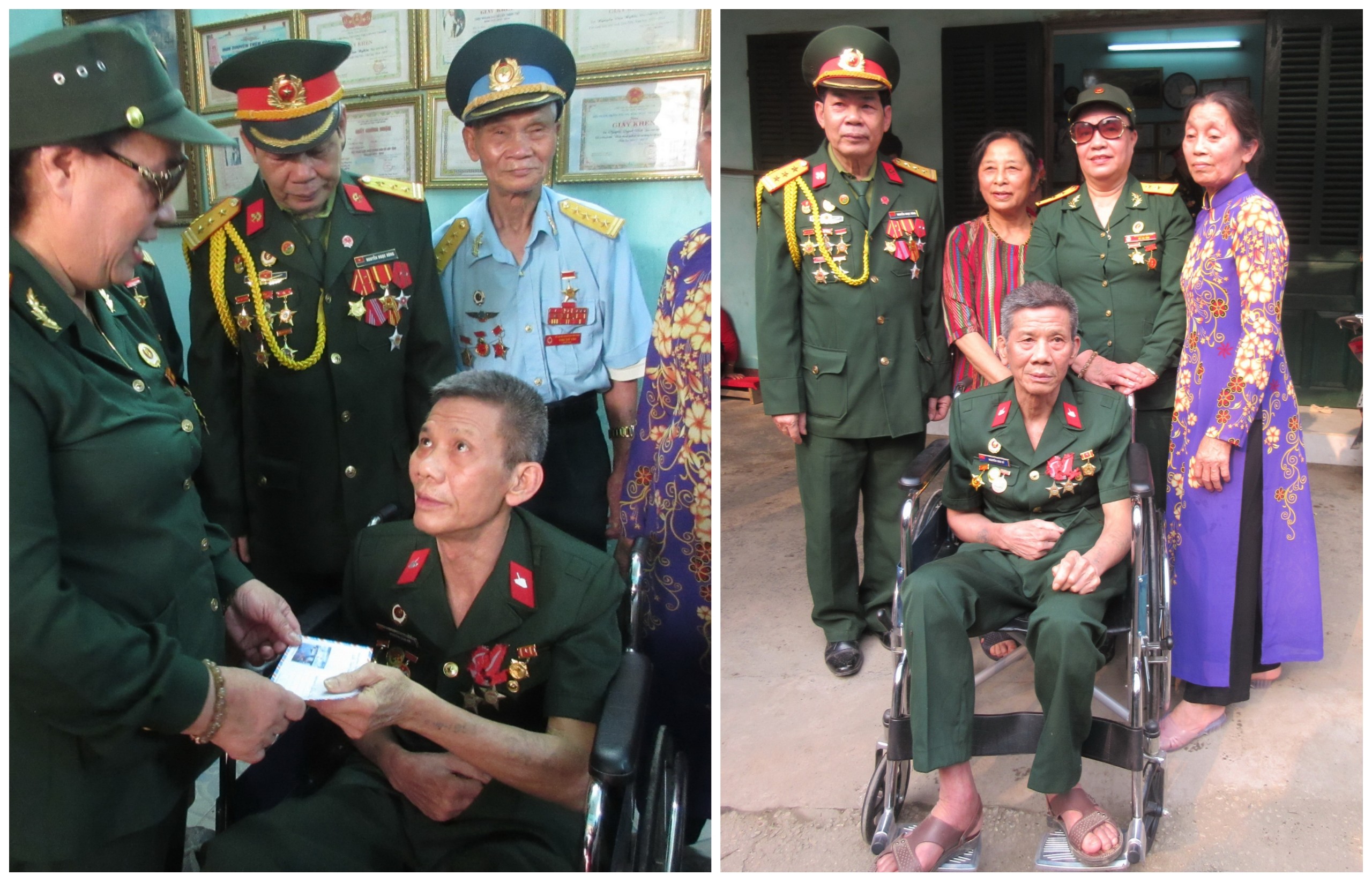 Tới thăm pháo thủ số 2 Nguyễn Văn Kỷ, Đại Tá Đinh Thế Văn, AHLLVT Chủ tịch CLB chia sẻ: “Anh em CLB CCB liên các tỉnh thành biết tin đồng chí bị tai biến 4 năm nay. Hôm nay anh, chị em trong Đoàn mới có dịp tới thăm đồng chí. Và chúc đồng chí nhanh phục hồi sức khỏe, để cùng anh em chúng tôi đi làm công tác từ thiện, tới những nơi có đồng bào gặp khó khăn. Hôm nay Đoàn tới thăm, có chút quà gửi tặng tới đồng chí…”.