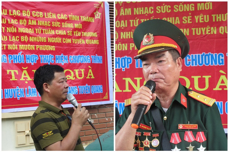 Phát biểu tại buổi gặp mặt và trao quà cho Trung tâm Y tế huyện Lâm Bình và một số gia đình chính sách có hoàn cảnh đặc biệt khó khăn ở xã Lăng Can, huyện Lâm Bình, ông Bùi Đức Long, Phó Chủ tịch phụ trách du lịch và đời sống CLB, Giám đốc Công ty CPTM Dịch vụ vận tải Du lịch Sức Sống Mới nói: “CLB CCB liên các tỉnh thành tập hợp hội viên nguyên là cán bộ chiến sĩ quân đội nhân dân, Công an nhân dân, thanh niên xung phong, dân quân du kích, công nhân quốc phòng. Đã trực tiếp chiến đấu và phục vụ chiến đấu qua các thời kỳ chống Pháp, chống Mỹ và chiến đấu bảo vệ biên giới của Tổ quốc. Cùng tham gia buổi tặng quà hôm này còn có các CCB, các nhà hảo tâm, các tổ từ thiện thuộc CLB Âm nhạc Sức Sống Mới và CLB những người con Tuyên Quang kết nối muôn phương”.